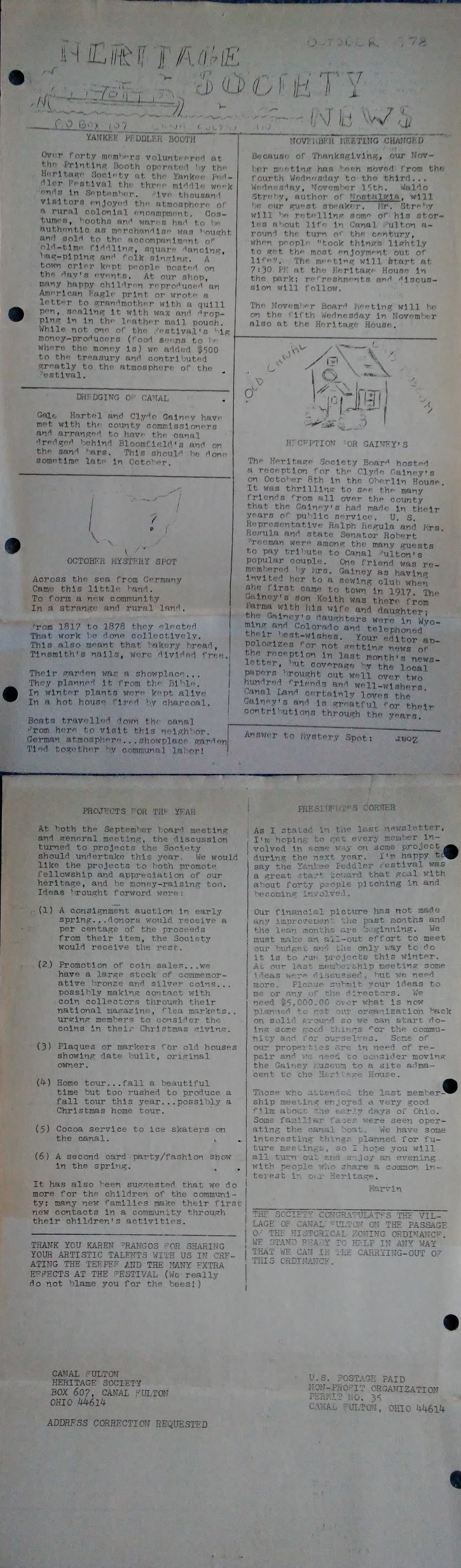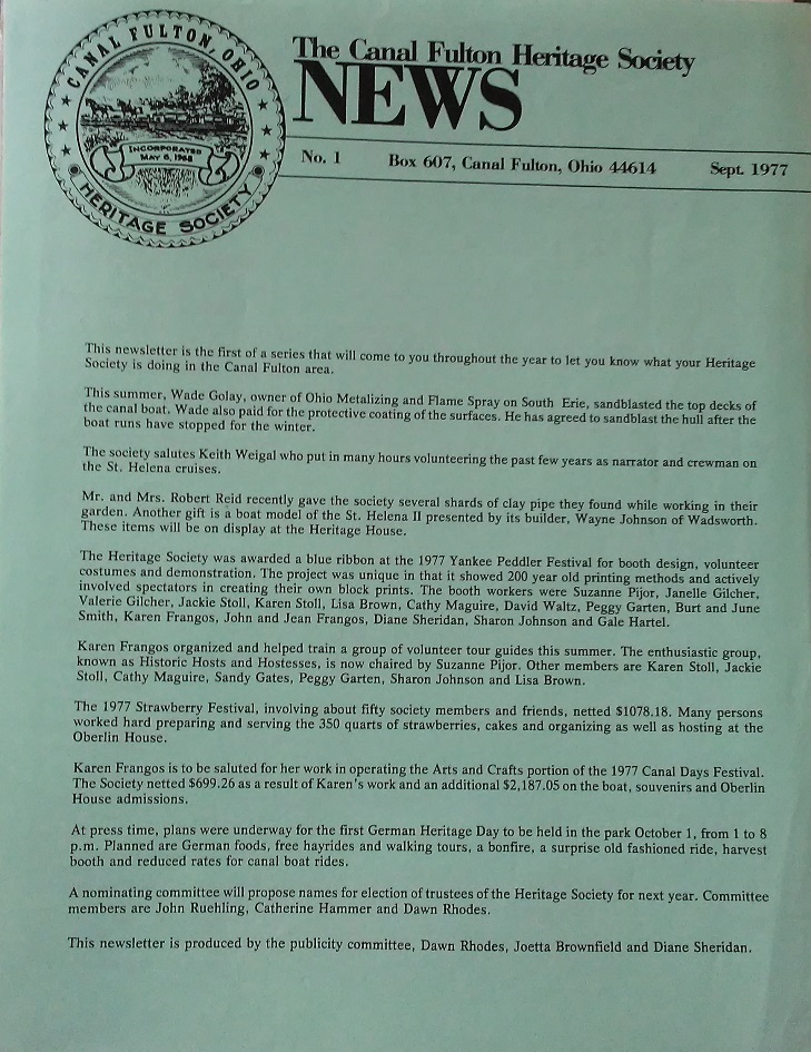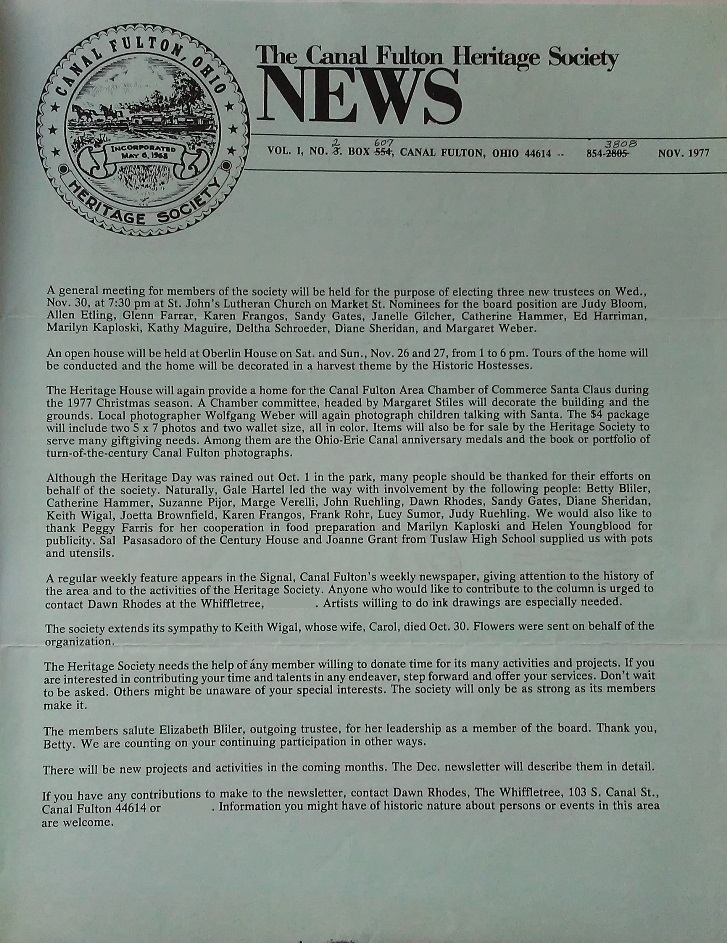 | 1977 | November | The Canal Fulton Heritage Society News |