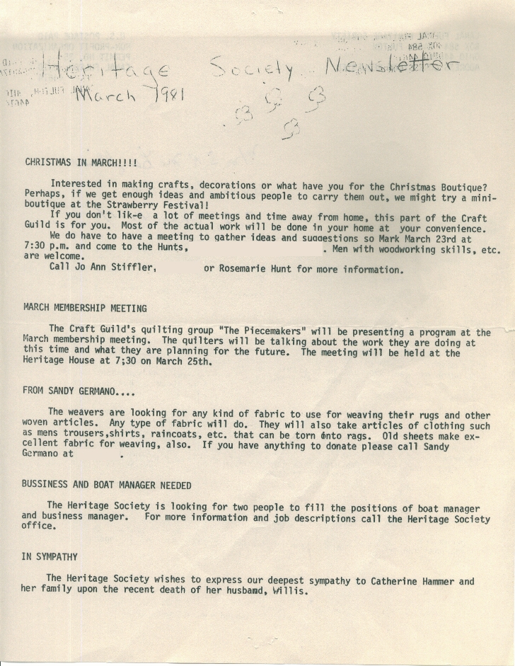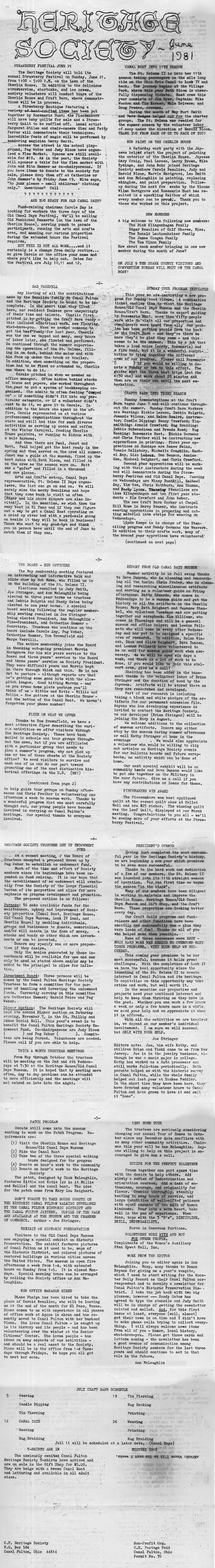 | '79 | October | Heritage Society News | '79 | September | Heritage Society News | '79 | August | Heritage Society News | '79 | June & July | Heritage Society News | '79 | May | Heritage Society News | '79 | April | Heritage Society News | '79 | March | Heritage Society News | '79 | February | Heritage Society News |