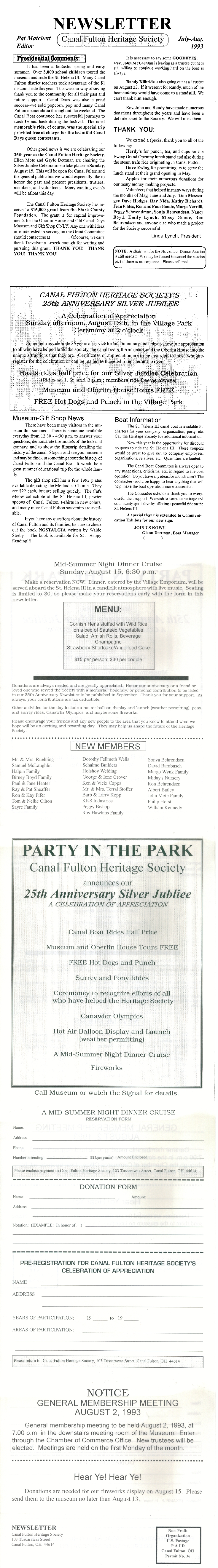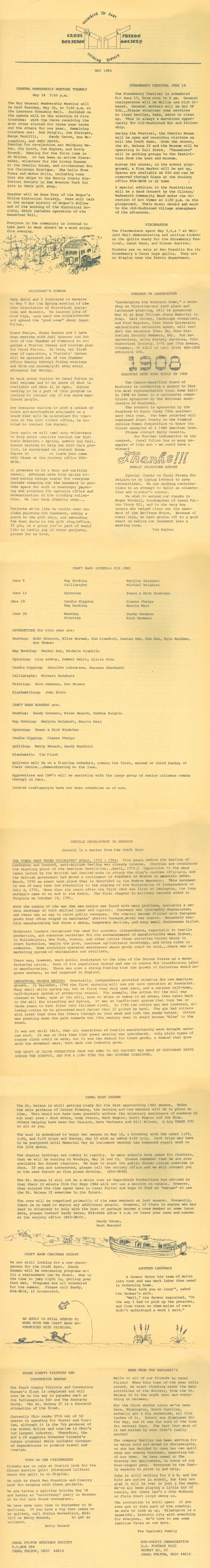 Newsletters may be one of the greatest tools an organization can have. They serve as a platform from which to voice concerns, needs, thanks, congratulations, well-wishes and condolences; they (obviously) keep the members and friends updated - hopefully spurring them on to become more active; they serve to not only announce but give detail of coming events, programs and projects; and finally they provide a means of keeping record of the CFHS - basically like a journal entry. While meeting minutes contain the nitty gritty detail of operations, they aren't really designed to tell the story of CFHS events, programs and projects (thus, newsletters help fill in where the businees meetings leave off).